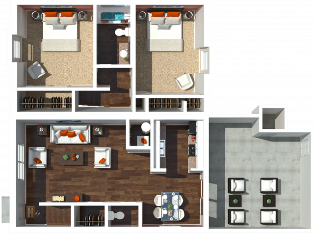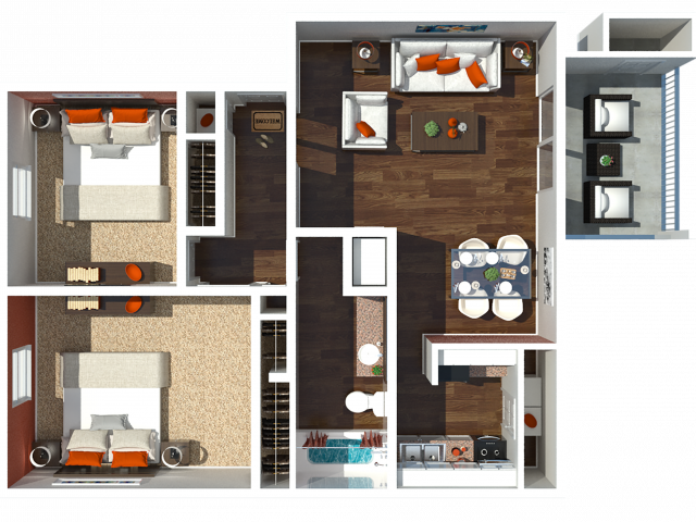 2 Beds, 1 Bath, 808 sq ftAvailable NowModel Gallery