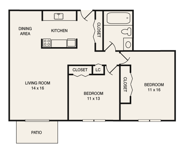 2 Beds, 1 Bath, 1000 sq ftAvailable Jul 1, 2026Model Gallery