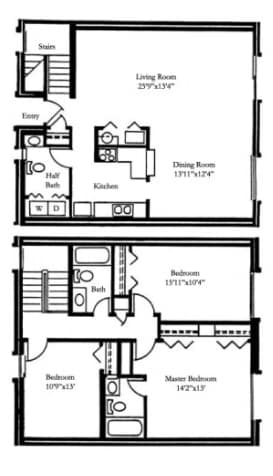 Apartment Model: 2x3TR$9992 Bedroom, 3 Bath, 1125 sq ftAvailable Now![]()
