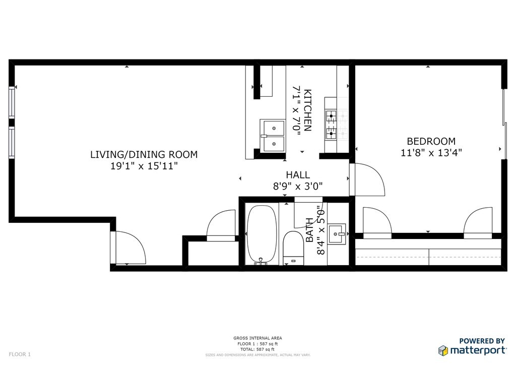 Studio, 1 Bath, 587 sq ftAvailability Details