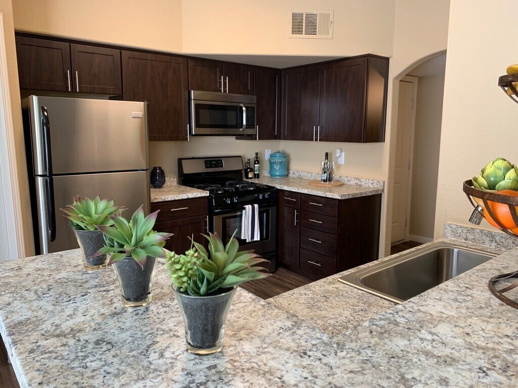 The artfully colored stucco buildings of Spanish Ridge Apartments sit against a backdrop of lush green palms, creating a dreamy place to all home. Verdant landscaping surrounds our pet-friendly one and two bedroom Las Vegas apartments, adding to the elegant resort-inspired vibe. Exceptional interior elements include stainless-steel appliances, a full-size washer and dryer, and a large, private balcony or patio. Looking to relax? Our modern community is home to two sumptuous swimming pools and spas. Featuring a 24-hour fitness center and myriad opportunities for sport and exercise, Spanish Ridge Apartments is a sparkling gem amidst the desert landscape.