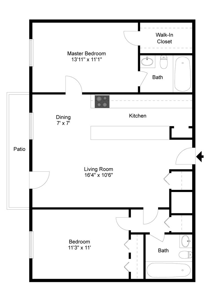 Apartment Model: 2 Bed 1 Bath with Washer/Dryer - Deluxe$1,4192 Bedroom, 1 Bath, 905 sq ftAvailable Now![]()