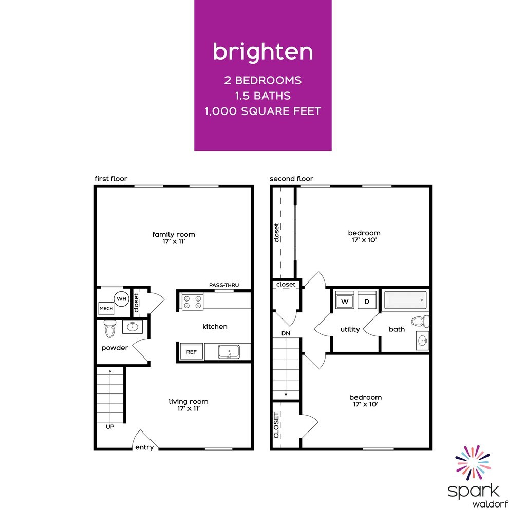 Apartment Model: Brighten2 Bedroom, 1.5 Bath, 1000 sq ftUnavailableBrighten - Floorplan 1 Wonder