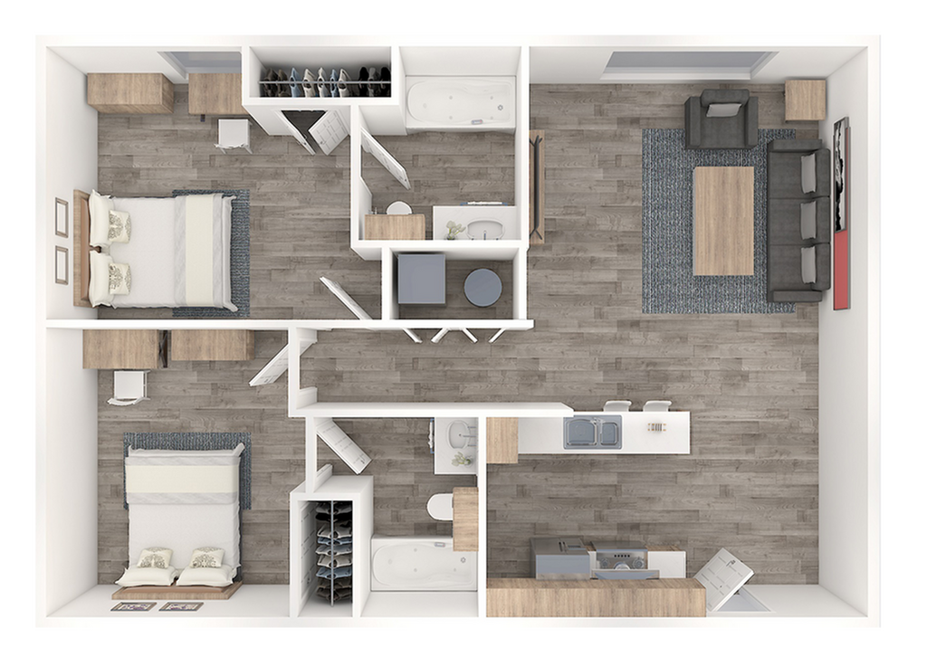 2 Beds, 2 Baths, 888 sq ftAvailable August 14, 2026Model Gallery