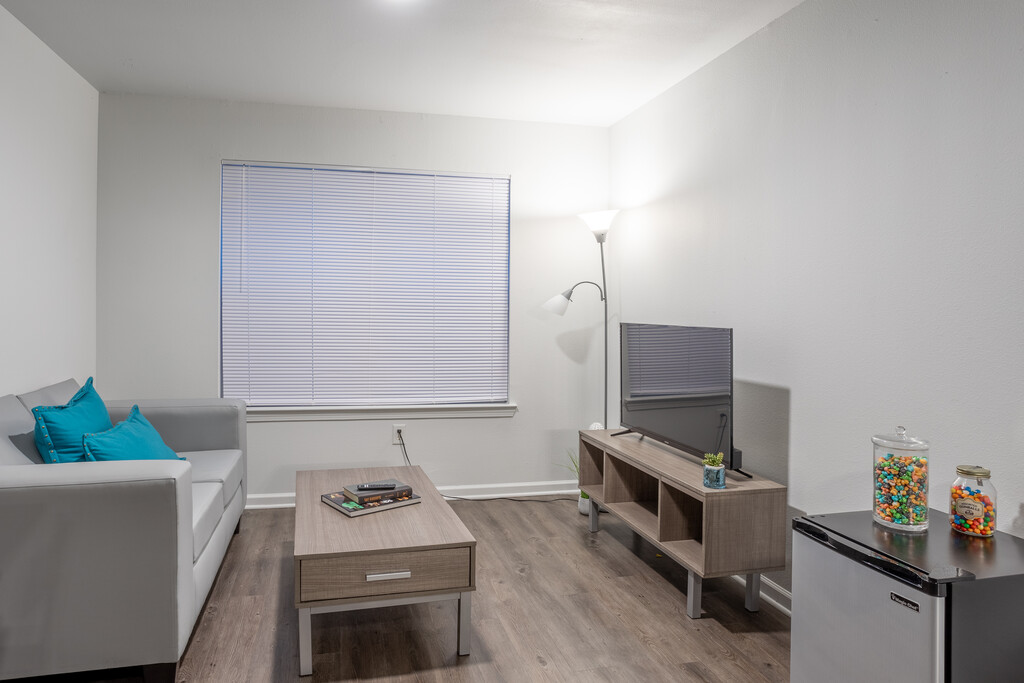 Welcome to Sparq on Rio (formerly Rio West) - off-campus apartments just steps from The University of Texas at Austin. We offer fully-furnished 2, 3, and 4 bedroom apartments; all featuring private bedrooms, spacious common areas, a wall-mounted flat screen TV, and full-sized in-unit washer and dryer. Our pet-friendly apartments include a modern furniture package, full kitchens with stainless steel appliances, wood-style flooring, and private balconies and patios. High-speed internet, maintenance, trash and sewer service are all included in your monthly rental installment. Our premier community amenities include a resort-style pool, outdoor patio with grilling stations, concierge package service, controlled access parking, bike share access, and more! Our resident clubhouse features a 24-hour fitness gym, entertainment lounge with games, coffee bar, business center and group study rooms.