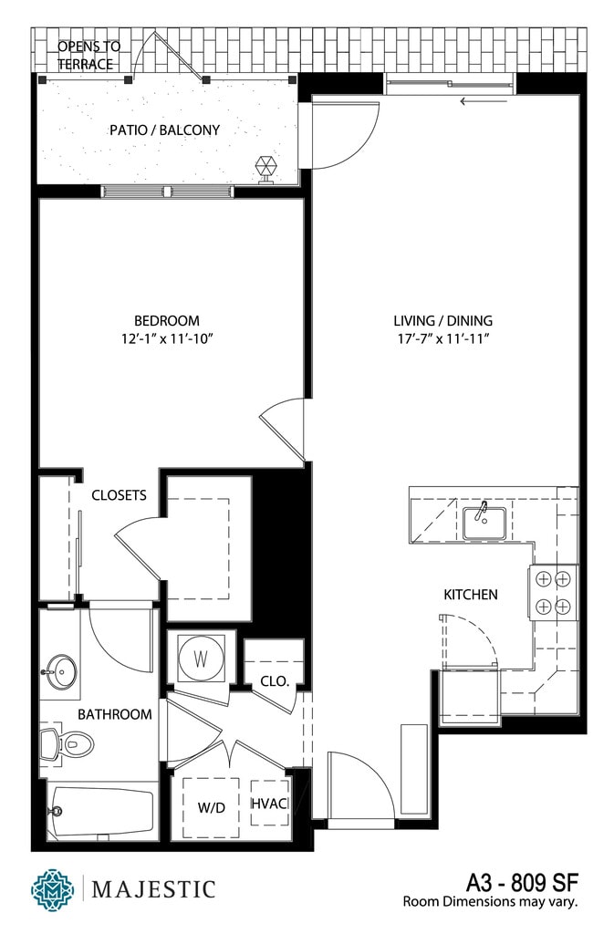 Spectrum Majestic offers Studio to 2 Bedroom apartments starting from $1,741 and having 626–1,266 sq ft. Here is the current pricing and availability: