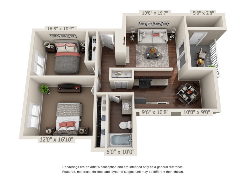 2 Beds, 1.5 Baths, 968 sq ftModel Gallery