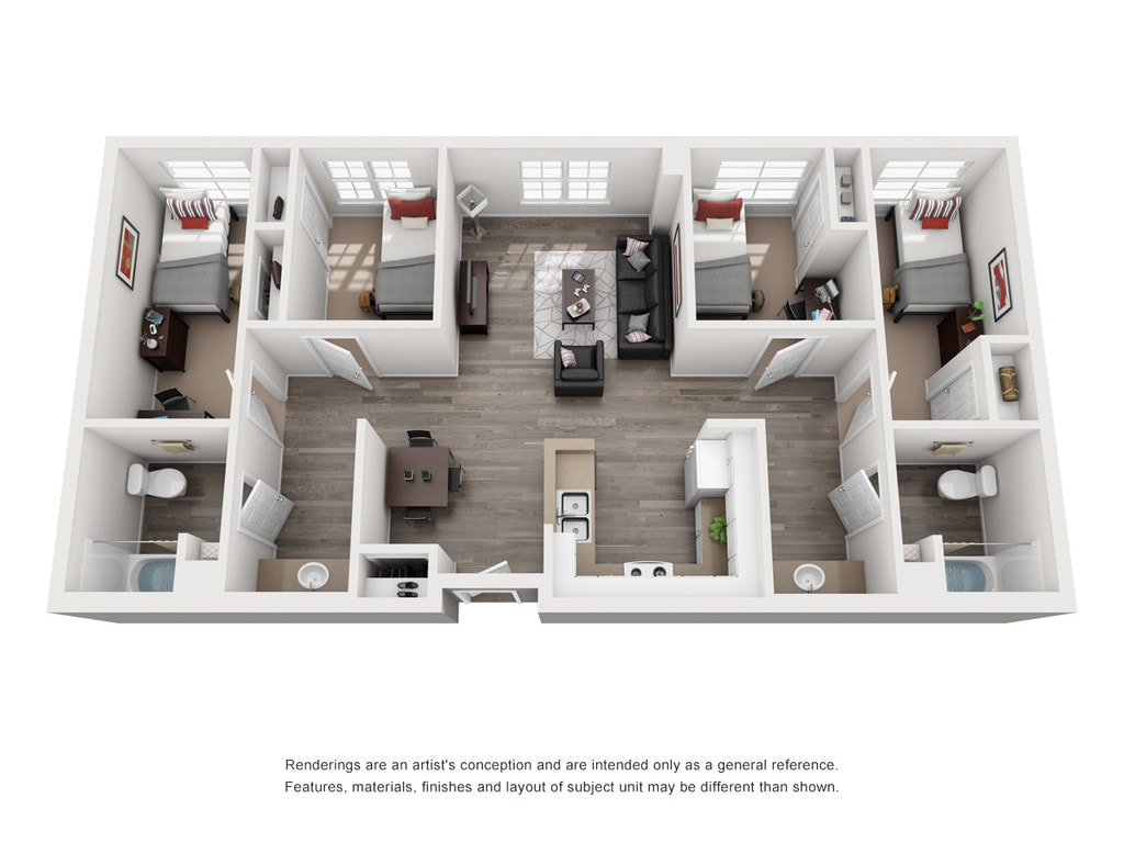 Price Availability Date Unit Sq Ft $900 Call for Availability 4 Bedroom | 2 Bathroom 625 sq ft Model Amenities and Features