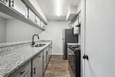 Newly remodeled 1-bedroom apartments. Lots of space, new fixtures, beautiful tiled bathtubs, central air conditioning and heating. Gated community, BBQ grill, parking, and pets are welcome. Schedule a tour today. There is a $80 amenity package that includes water, trash, gas, parking, and pest control.