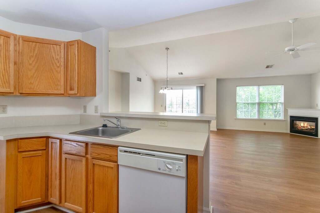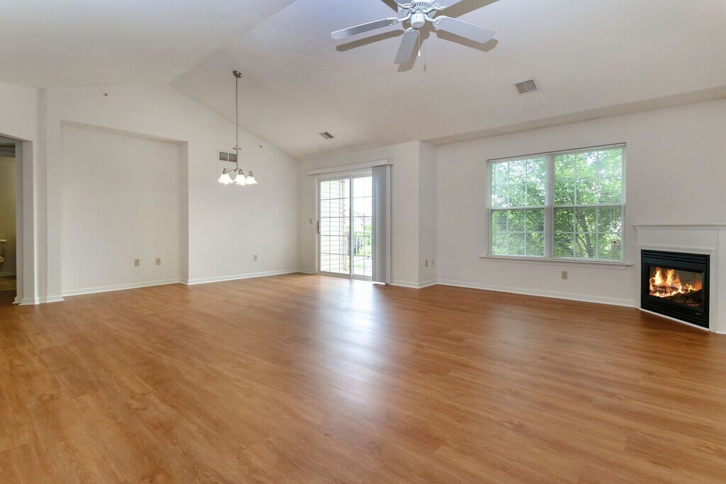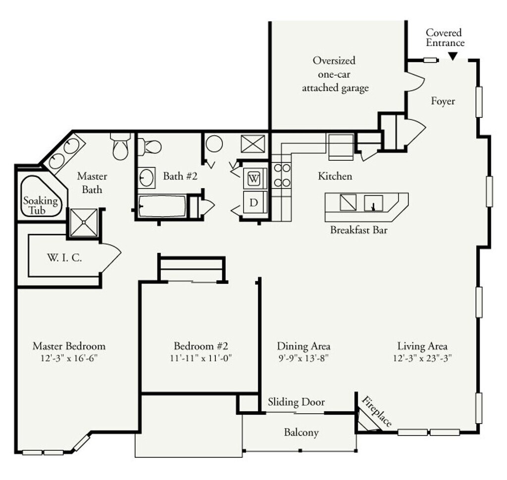 *Rental Rate quoted is subject to change based upon lease term. This charming two-bedroom, two-bathroom home is located on the second floor. The open-style kitchen with breakfast bar opens into the living and dining rooms. The electric fireplace offers a cozy atmosphere and the unique split bedroom layout offers additional privacy. The Master Suite contains a large walk-in closet and bathroom complete with soaking tub, shower stall, and double vanities. The detached one-car garage protects your vehicle from the elements and the private storage gives you quick access to your things. This layout will feature luxury vinyl tile (LVT) flooring in all living areas, which is specifically designed to look like hardwood flooring, for a timeless and elegant look. This layout requires area rugs to cover 80% of the LVT flooring. Maximum occupancy for this layout is a total of 4 occupants.
