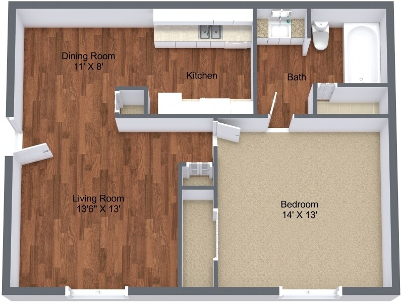 1BR/1BA - Floorplan 6 2 Bedrooms