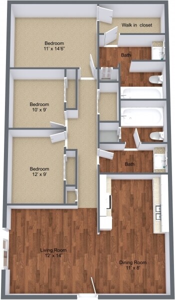 2BR/1.5BA - Floorplan 11 3 Bedrooms