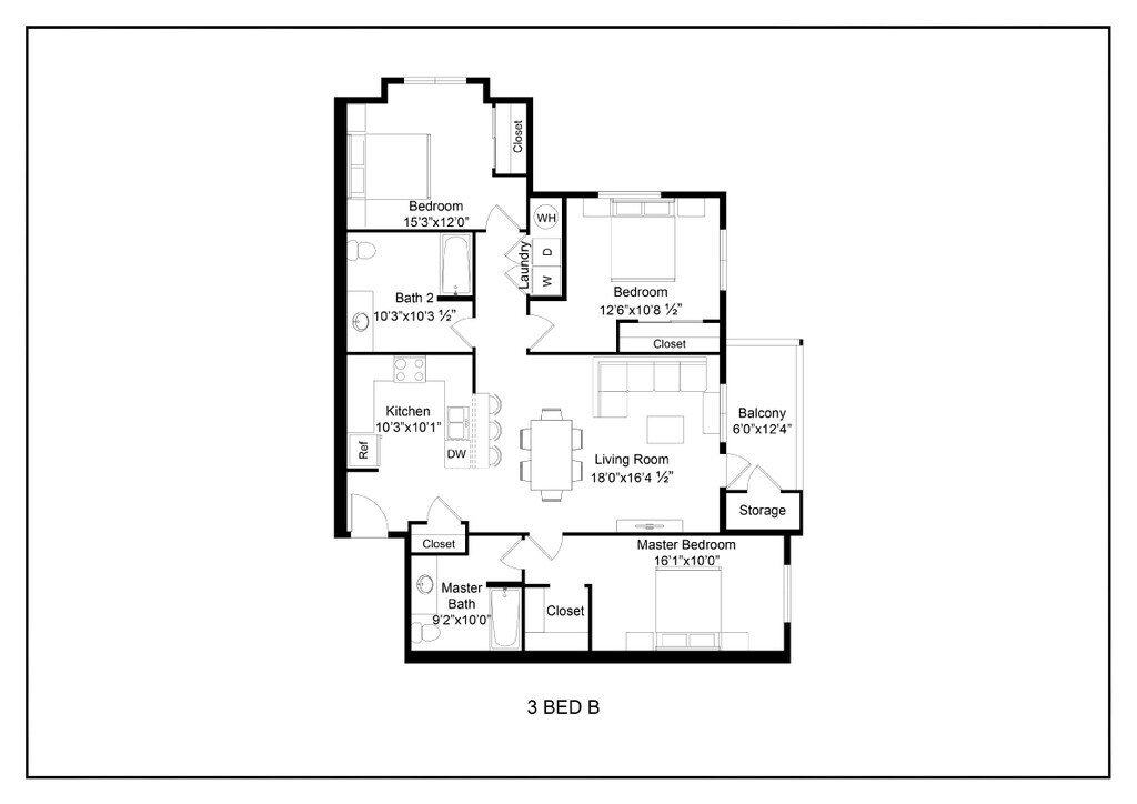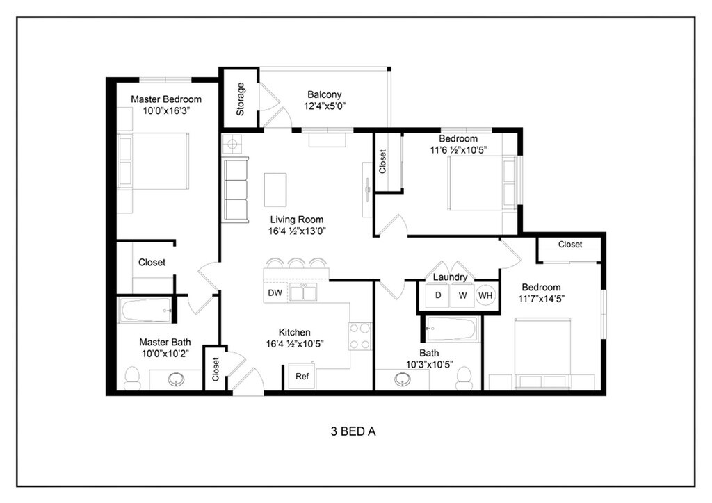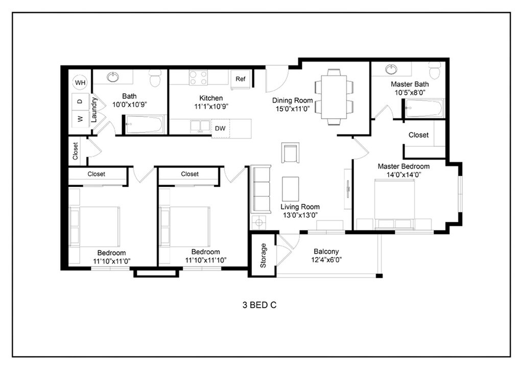 3 Beds, 2 Baths, 1287 sq ftLargest 3 BedroomThis is the largest 3 Bedroom at this PropertyModel Gallery
