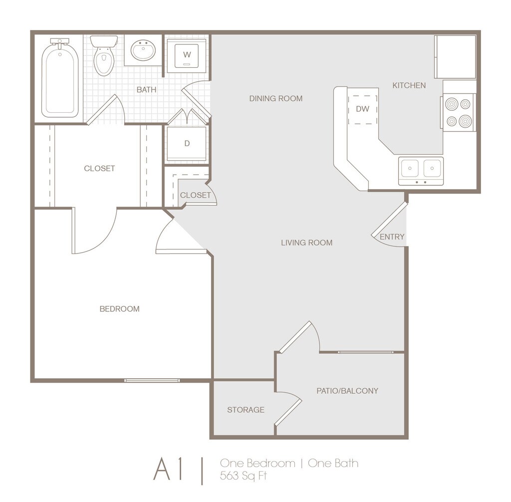 1 Bed, 1 Bath, 573 sq ftAvailable NowModel Gallery