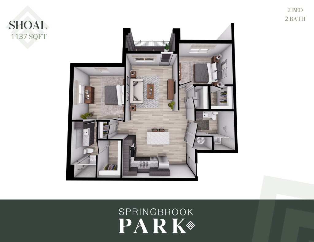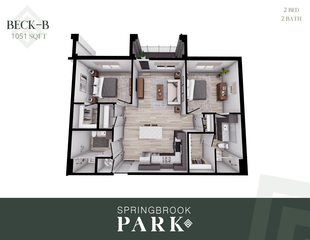 Springbrook Park Apartments offers Studio to 2 Bedroom apartments starting from $1,250 and having 572–1,137 sq ft. Here is the current pricing and availability: