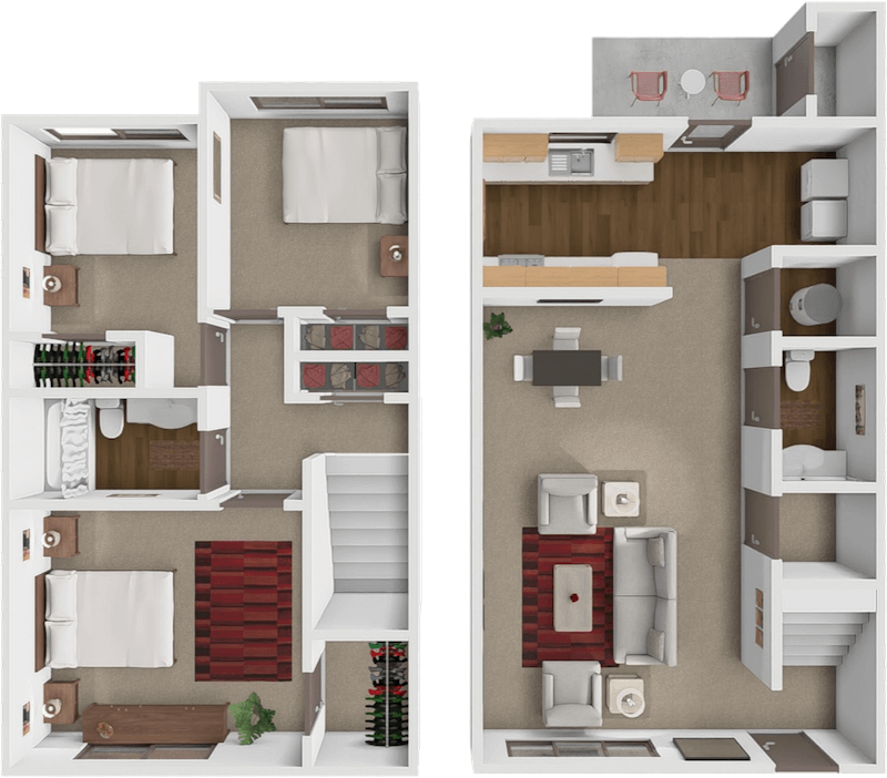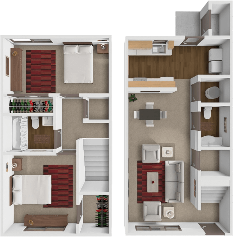 Apartment Model: 2 Bed 1.5 Bath TownhomeFrom $1,1652 Bedroom, 1.5 Bath, 960 sq ftAvailable November 3, 2025![]()