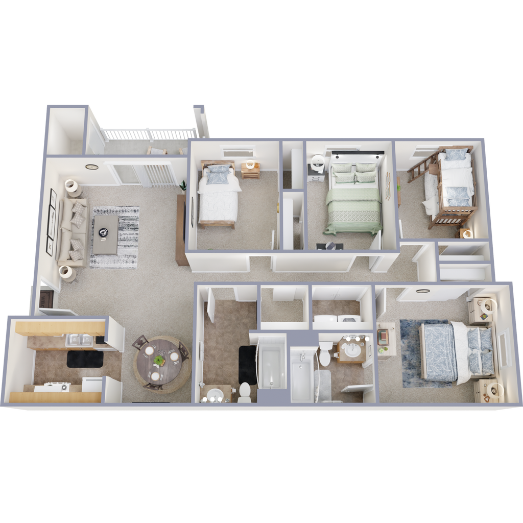 3B - Floorplan 2 Apartment Unit: 098Apartment Model: 3B$1,7453 Bedroom, 2 Bath, 1057 sq ftAvailable NowApartment Unit: 139Apartment Model: 3B$1,7453 Bedroom, 2 Bath, 1057 sq ftAvailable NowApartment Unit: 145Apartment Model: 3B$1,7453 Bedroom, 2 Bath, 1057 sq ftAvailable Now4 Bedrooms