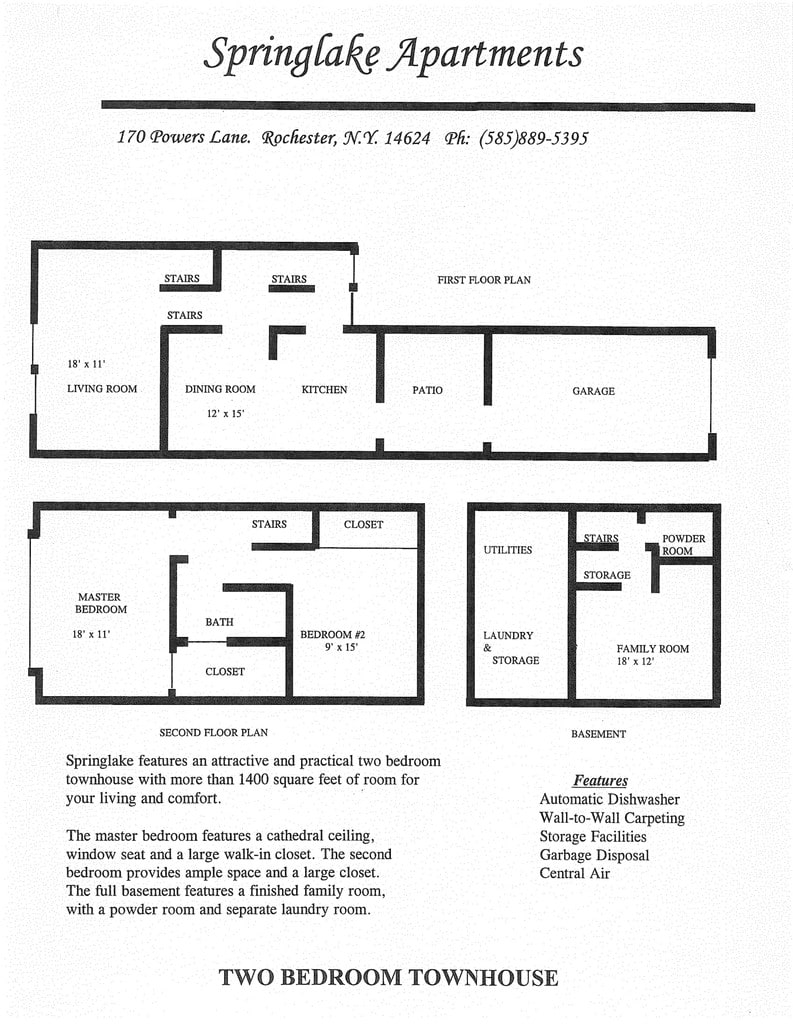 *Please note that our availability changes daily and may not be reflected in the listing here. Give us a call if you're interested in this property and we'll let you know!* Our Communities now requires Renter's Insurance for all tenants. Springlake Apartments & Townhouses are truly suburban Rochester's best kept secret. Located off of Chili Ave., Springlake is almost directly across from Wegmans, Bill Gray's, Tim Horton's, Target, and many parks and other retails areas. Continue Northeast and a short drive will lead you right to the center of downtown Rochester. Close by to the Rochester airport and access to all major highways makes travelling a breeze! Our units offer updated kitchens, cathedral ceilings, balconies, and patios, with a nice open floor plan. Included with all apartments is a storage room to store your gear, along with all water and trash removal. All Townhouses come with a large 1 car garage that includes loft storage! Here's our full list of Rochester Properties! Visit our website for more. -Chili Gardens -Grecian Gardens -Hilltop View -North Shore Townhomes -Northgate Manor -Springlake Apartments -Thistle Apartments