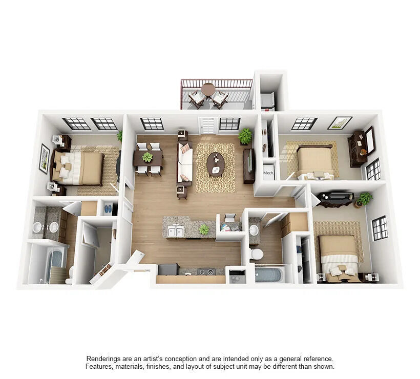3 Beds, 2 Baths, 1150 sq ftAvailable NowModel Gallery