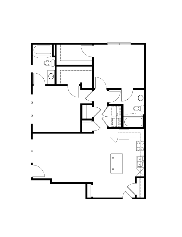 1 BR Grand Courtyard - Floorplan 2 2 Bedrooms