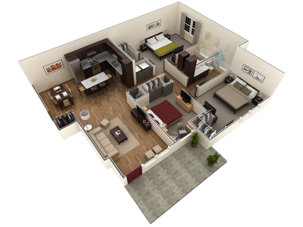 Apartment Model: 3 BR Grand Courtyard Garage3 Bedroom, 2 Bath, 1456 sq ftAvailable Now![]()