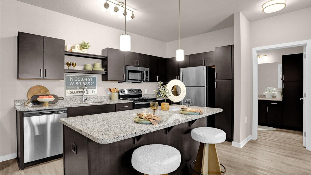 At Springs at Ashby in Collierville, TN, you’ll enjoy premium, townhome-style living, with all the comforts of an upscale neighborhood with a midwest small-town feel. Our studio, one, two, and three-bedroom apartments are conveniently located to everything to fit your unique lifestyle. Featuring a state-of-the-art fitness center, pet spa and playground, car care center, community clubhouse and resort-style pool.