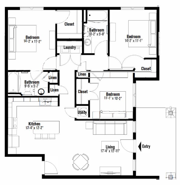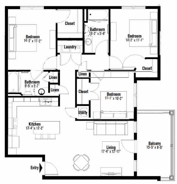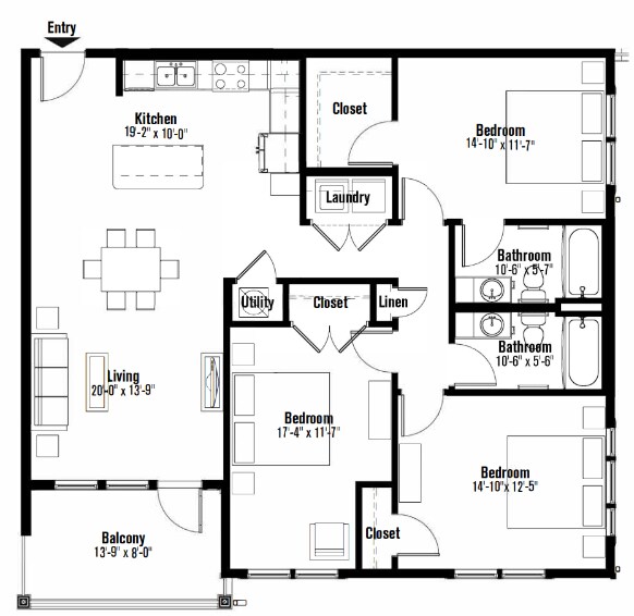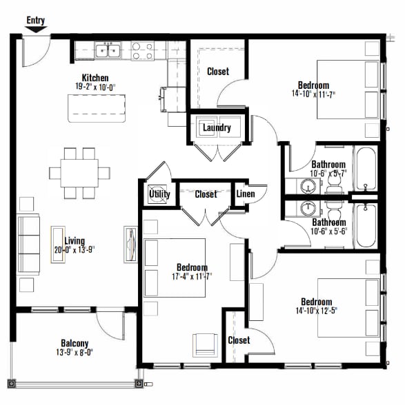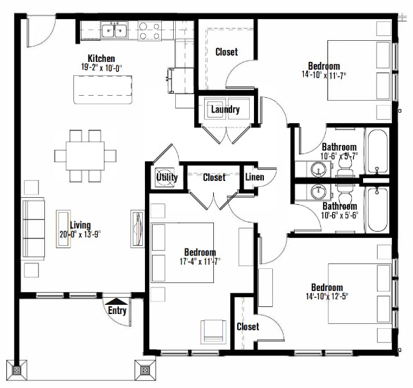 | Deerfield 3 Bedroom Apartments | $3,925 | $3,361 | $5,395 |