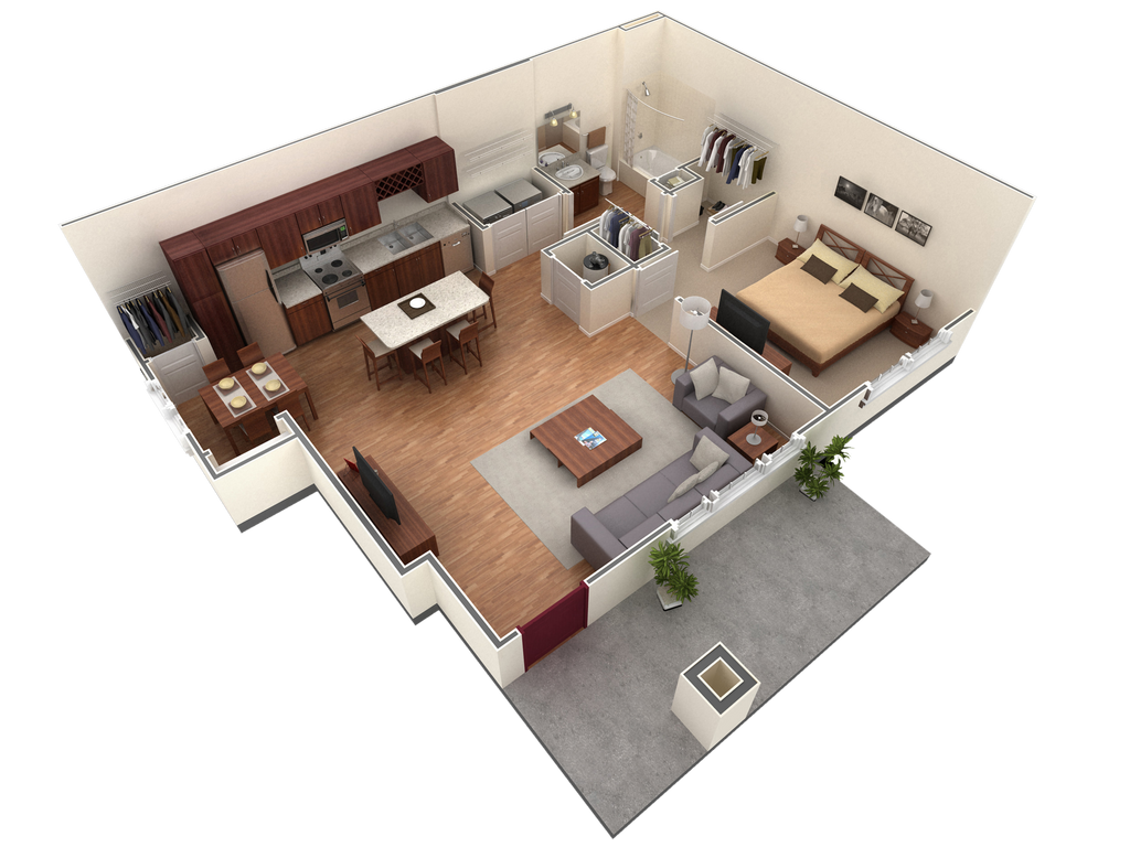 Apartment Model: Studio Grand CourtyardStudio, 1 Bath, 525 sq ftAvailable Now![]()