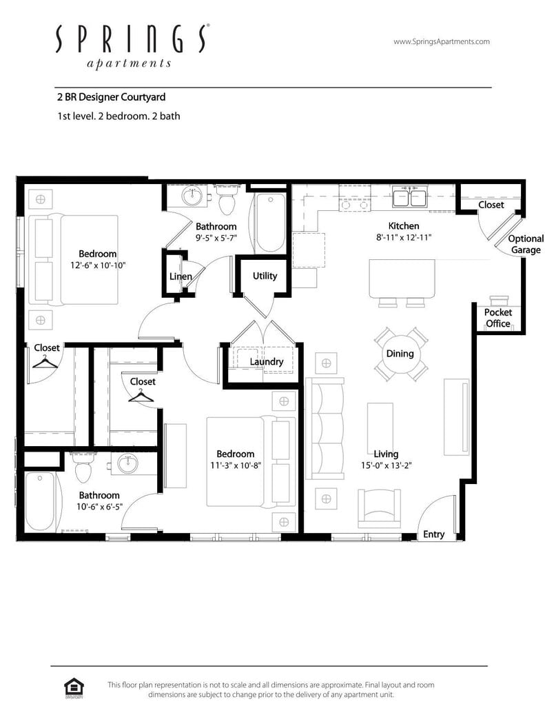 1 BR Designer Courtyard - Floorplan 1 ![]()
