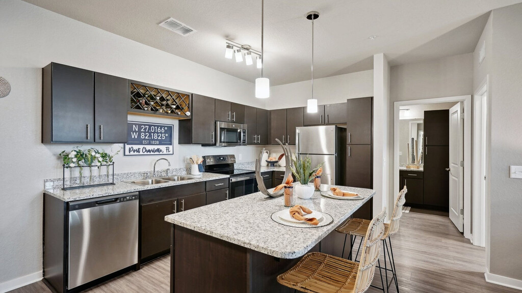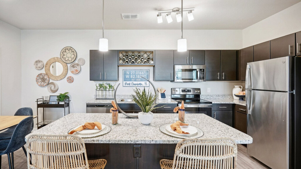 Springs at West Port is a brand new, pet-friendly, premium apartment community in Port Charlotte, Florida. Our gated community has studio, one, two, and three-bedroom townhome-style apartments that are minutes from major employers, schools, and everyday essentials. Stop by CVS or Publix on your way home from work. Enjoy an evening out at one of the nearby gems, like La Rocco or Centennial Park. Work on your swing at Kings Gate Golf Club or Maple Leaf Golf & Country Club, both just around the corner. What sets us apart from other apartment communities in this area? - 30-Day Pledge is our guarantee of your satisfaction. - Fenced-in yards in select units - Large pets are welcome - no weight limit - Sparkling swimming pool - Open floor plans with kitchen islands - Studios, 1, 2, & 3 bedroom apartments available. Please call us for an appointment today!