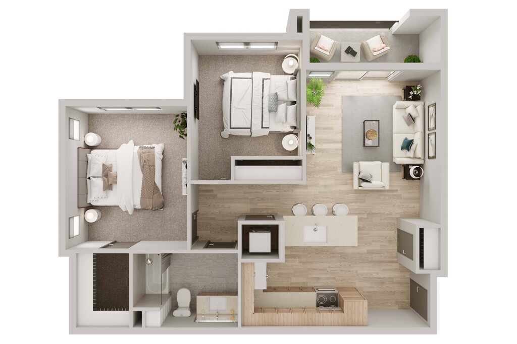1 Bed, 1 Bath, 615 sq ftModel Gallery