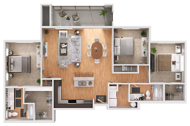 3 Beds, 2 Baths, 1355 sq ftAvailable NowModel Gallery