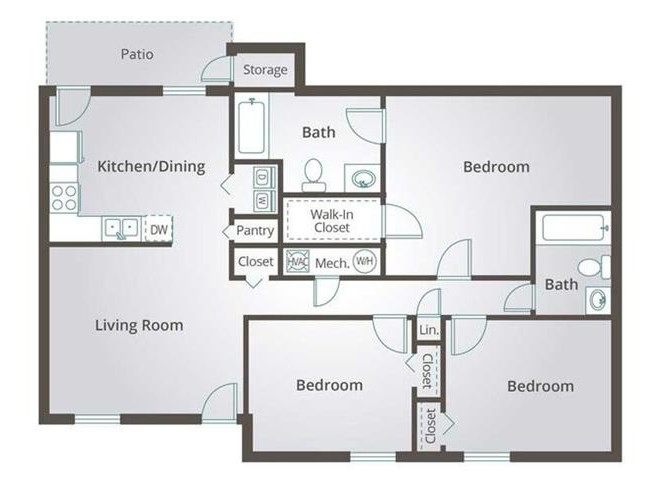 3 Beds, 2 Baths, 1094 sq ftAvailable NowModel Gallery