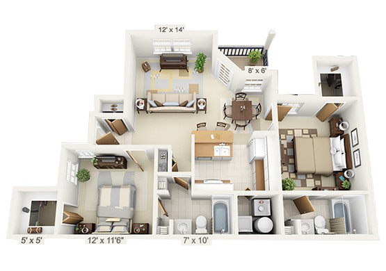 2 Beds, 2 Baths, 1014 sq ftAvailable NowModel Gallery