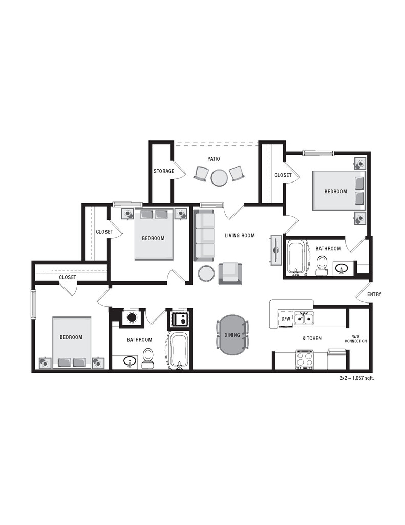 Apartment Model: Three Bedroom$1,0493 Bedroom, 2 Bath, 1057 sq ftAvailable Now![]()