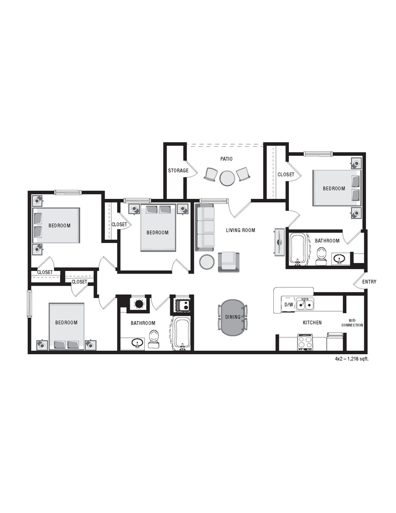 Apartment Model: Four BedroomCall For Rates4 Bedroom, 2 Bath, 1218 sq ftUnavailable![]()