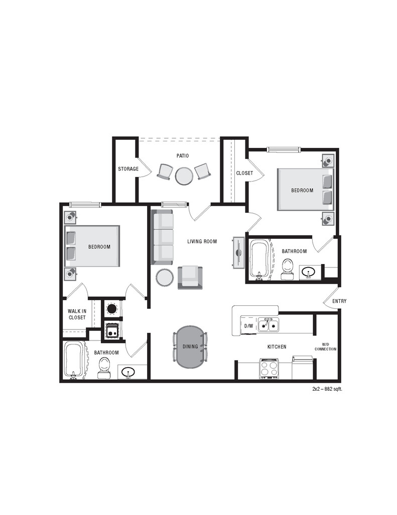 2 Beds, 2 Baths, 882 sq ftAvailable NowModel Gallery