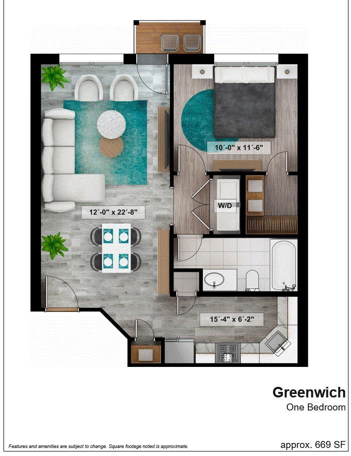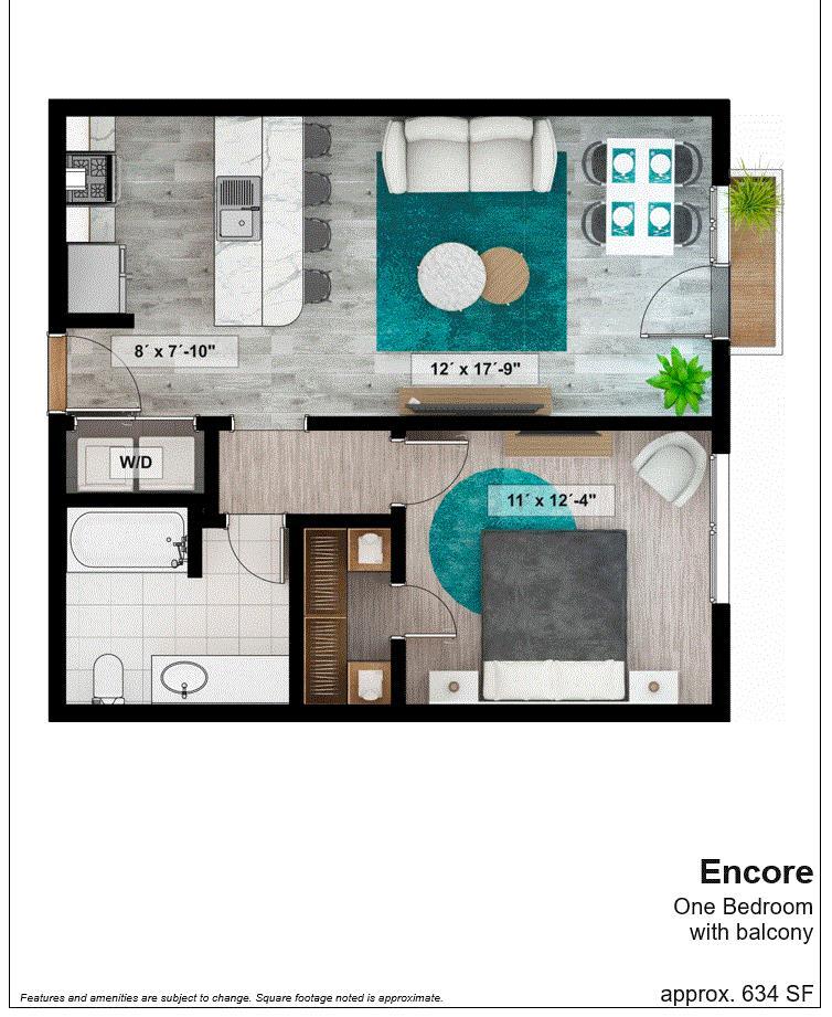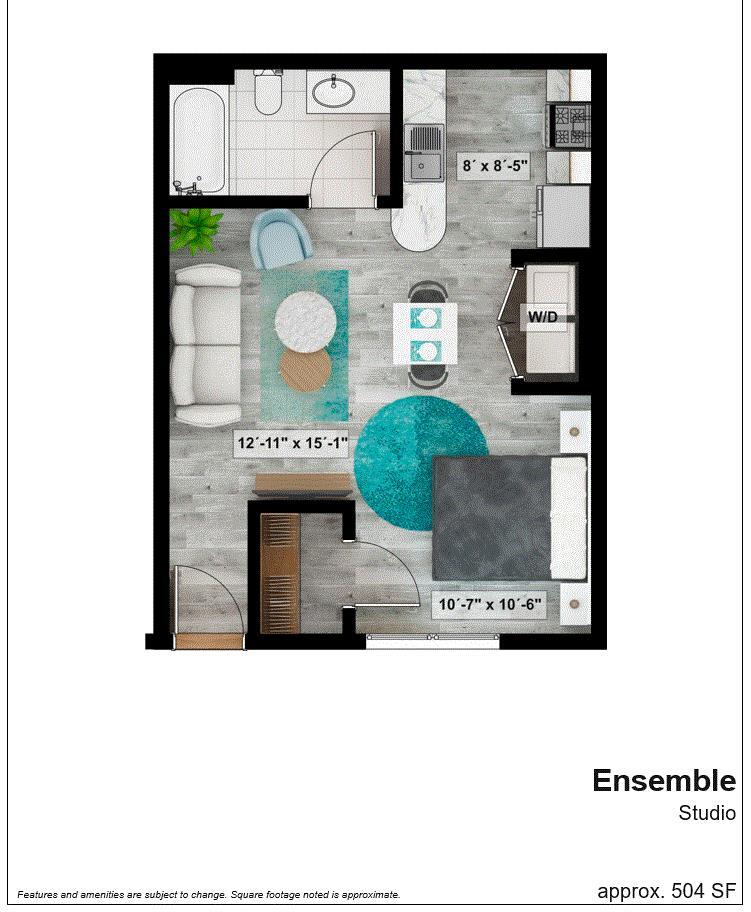 Availability Date Unit Sq Ft Call for Availability Adagio - Ensemble Renovated 504 sq ft Model Amenities and Features
