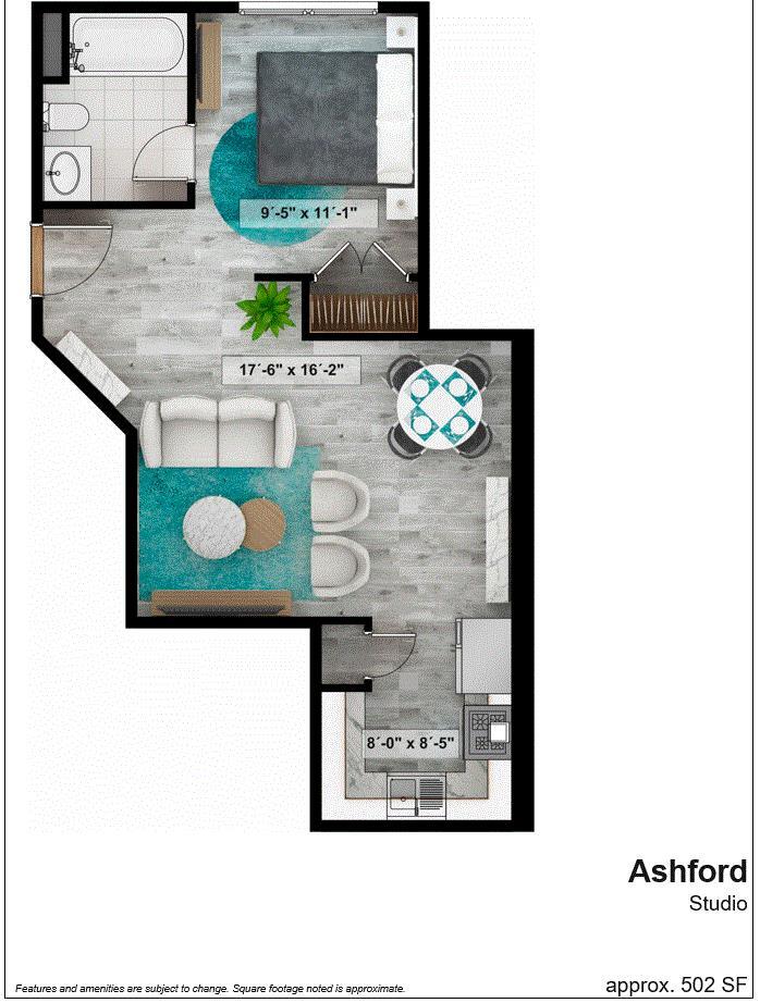 Availability Date Unit Sq Ft Call for Availability Village - Ashford Renovated 502 sq ft Model Amenities and Features