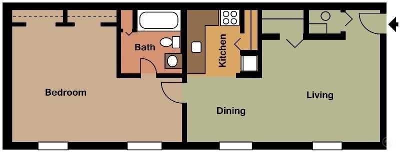 - Jr. 1 bedroom, 1 & 2 bedroom apts