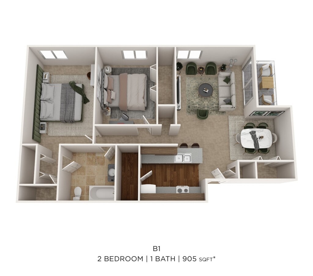 2 Beds, 1 Bath, 905 sq ftAvailable NowModel Gallery