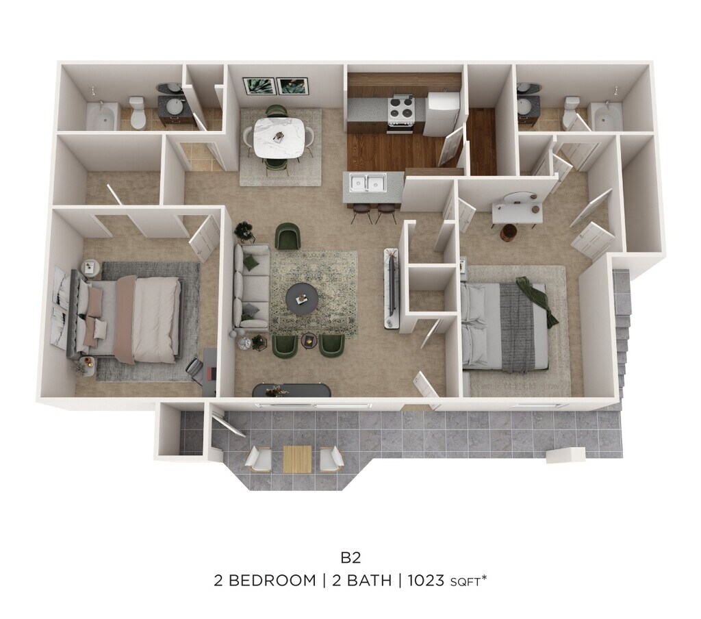 2 Beds, 2 Baths, 1023 sq ftAvailable NowModel Gallery