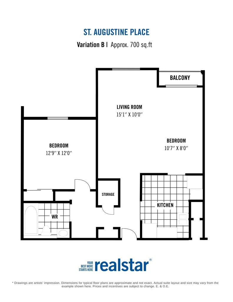 1 Bed 1 Bath A - Floorplan 2 2 Bedrooms