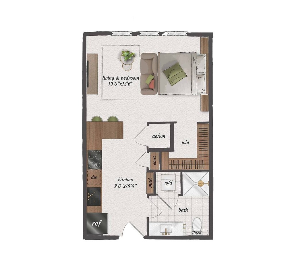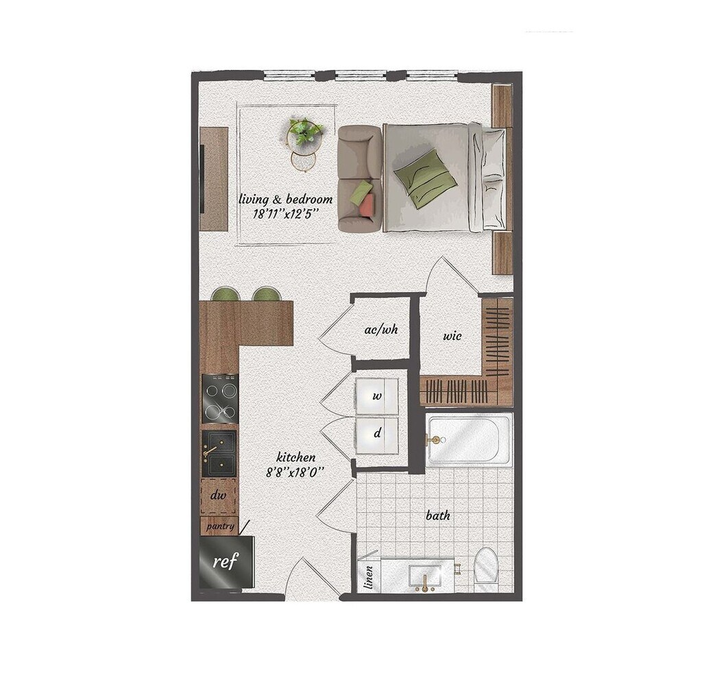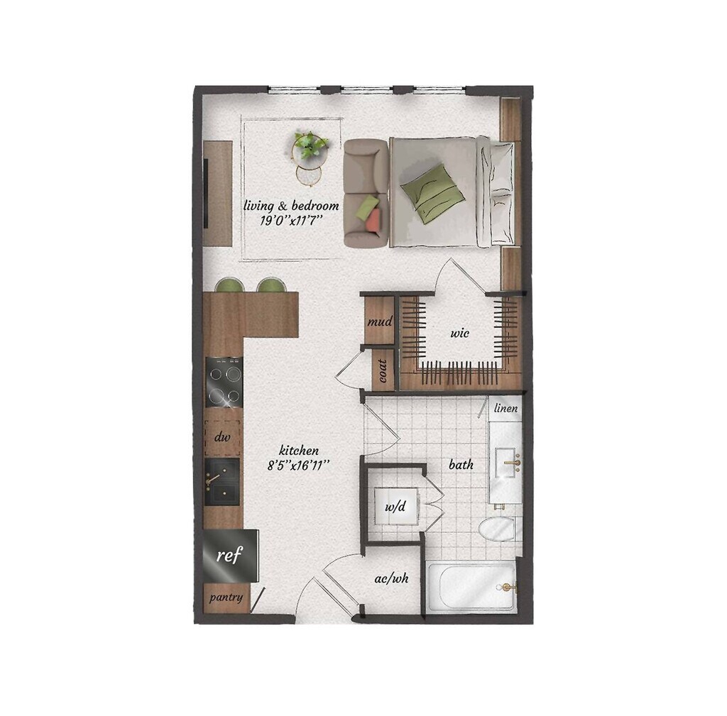 Studio, 1 Bath, 570 sq ftAvailable NowModel Gallery