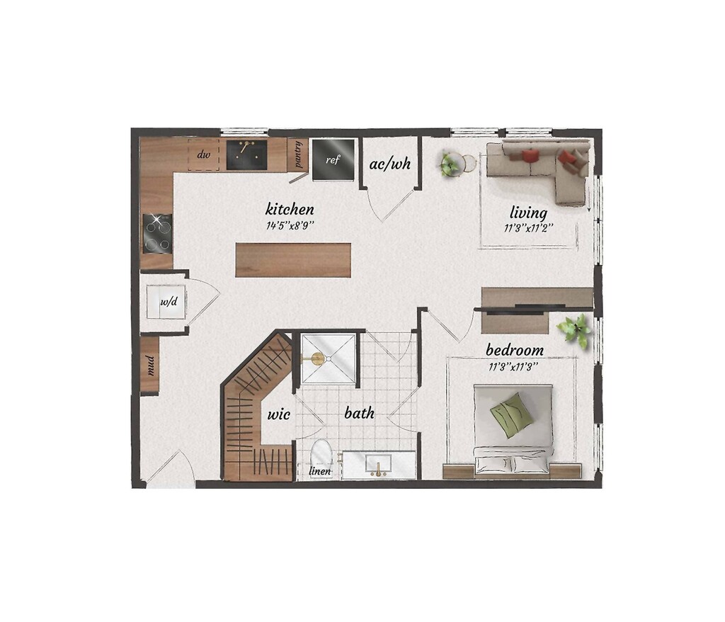 Apartment Model: A2-LW1 Bedroom, 1 Bath, 690 sq ftAvailable Now![]()
