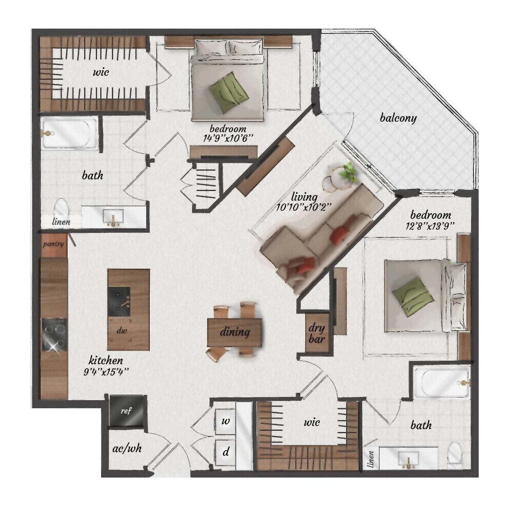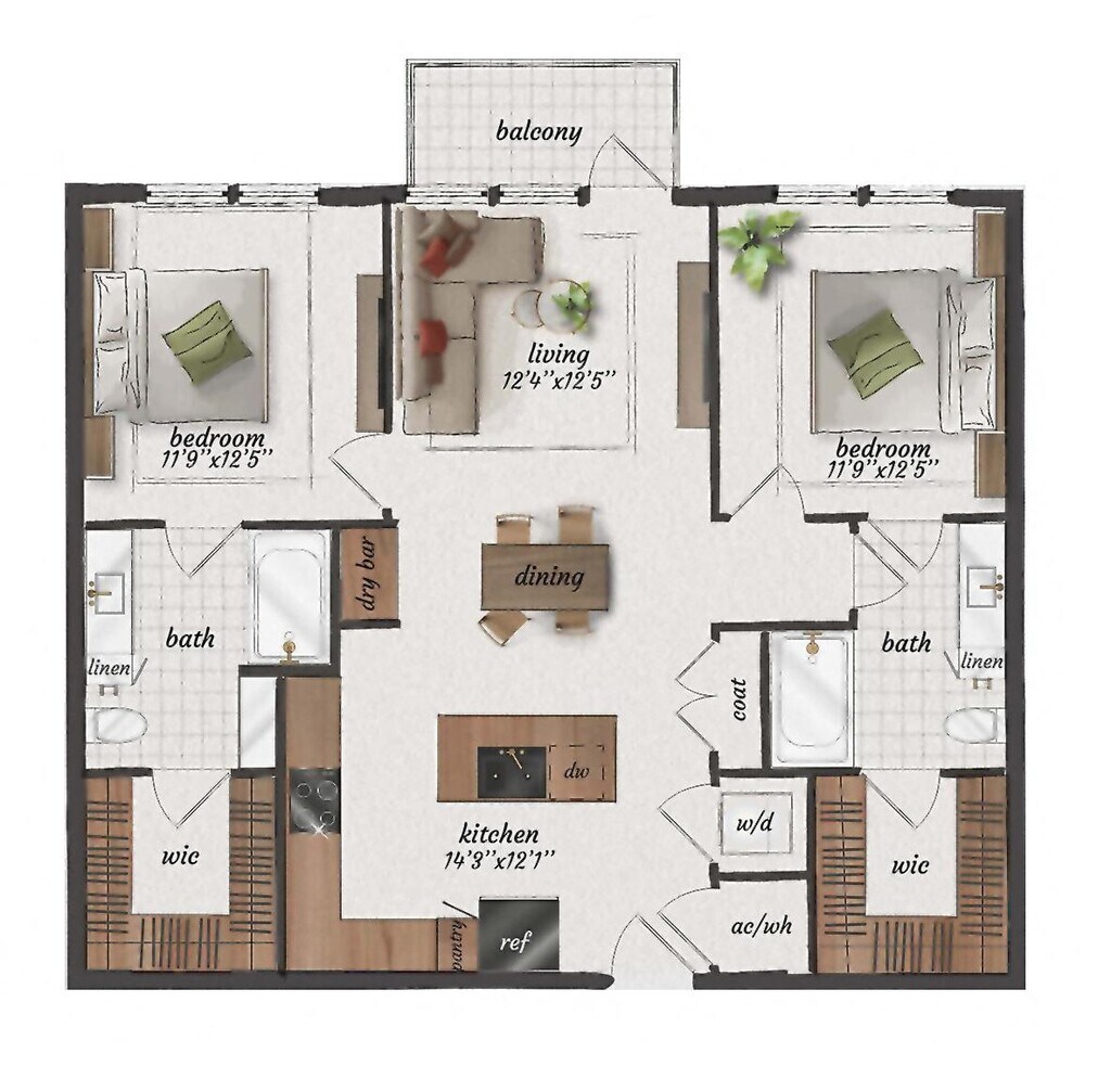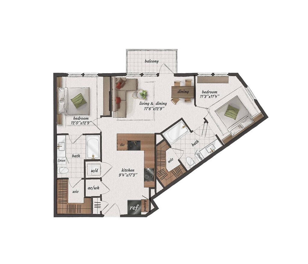 Apartment Model: A2.C1 Bedroom, 1 Bath, 690 sq ftAvailable Now![]()