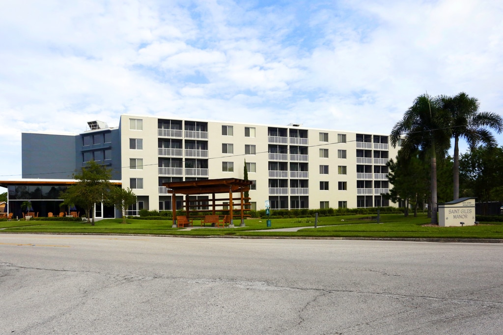 SENIOR APARTMENTS IN PINELLAS PARK, FLORIDA St. Giles Manor is a senior housing community conveniently located in picturesque Pinellas Park, Florida. We offer delightful one bedroom apartment floor plans with plenty of closet space and delightful amenities to make your home a restful haven. Our apartments offer in-house resident activities such as Saturday night movies shown on a wide screen TV in the large community living room. In the library, you can peruse a wide variety of books and pick out an old favorite or grab a new title you've been wanting to read! Quality of life is first and foremost at St. Giles Manor Apartments. Take a look through our photo gallery to see our gorgeous community and all we offer! Download our printable brochure plan your visit, and contact us today to speak with our friendly staff to learn about leasing one of our senior apartments in Pinellas Park for rent. Enjoy a full, rich quality of life at St. Giles Manor, where communities are built, apartments become homes, and residents are like family. TTY: FAX: