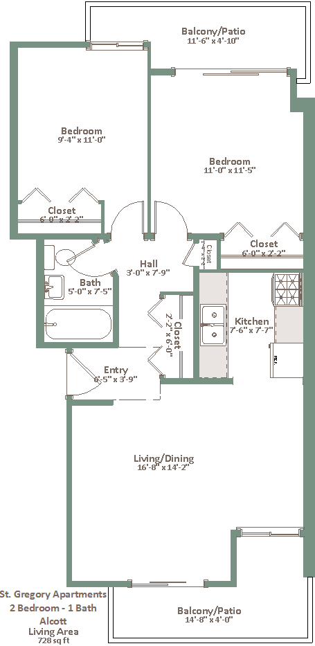 Apartment Model: AlcottFrom $1,1162 Bedroom, 1 Bath, 728 sq ftAvailable Now![]()