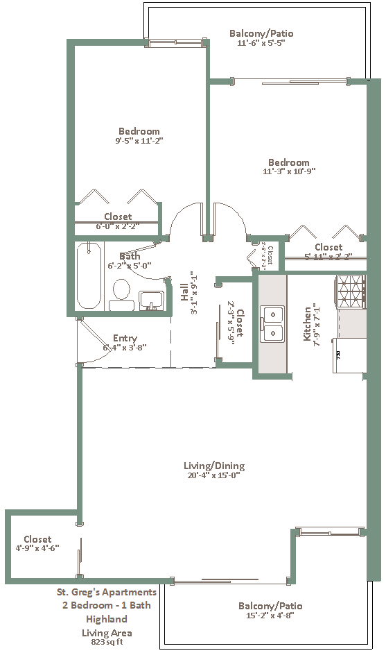2 Beds, 1 Bath, 823 sq ftAvailable NowModel Gallery