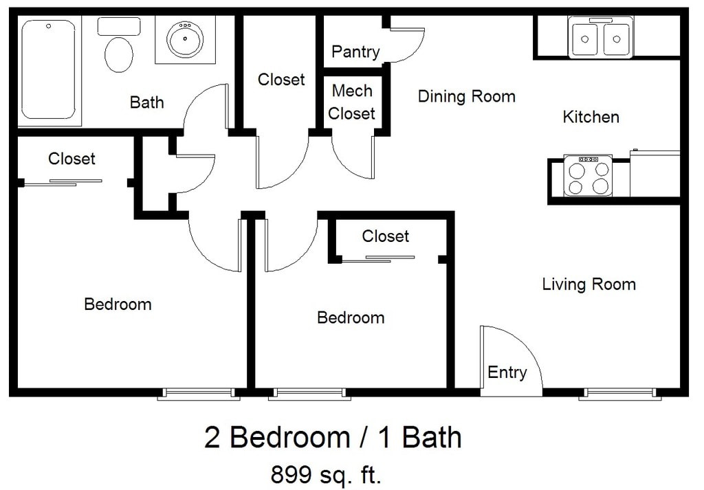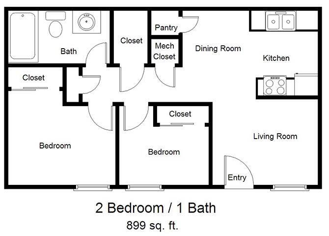 2 Beds, 1 Bath, 899 sq ftAvailable NowModel Gallery
